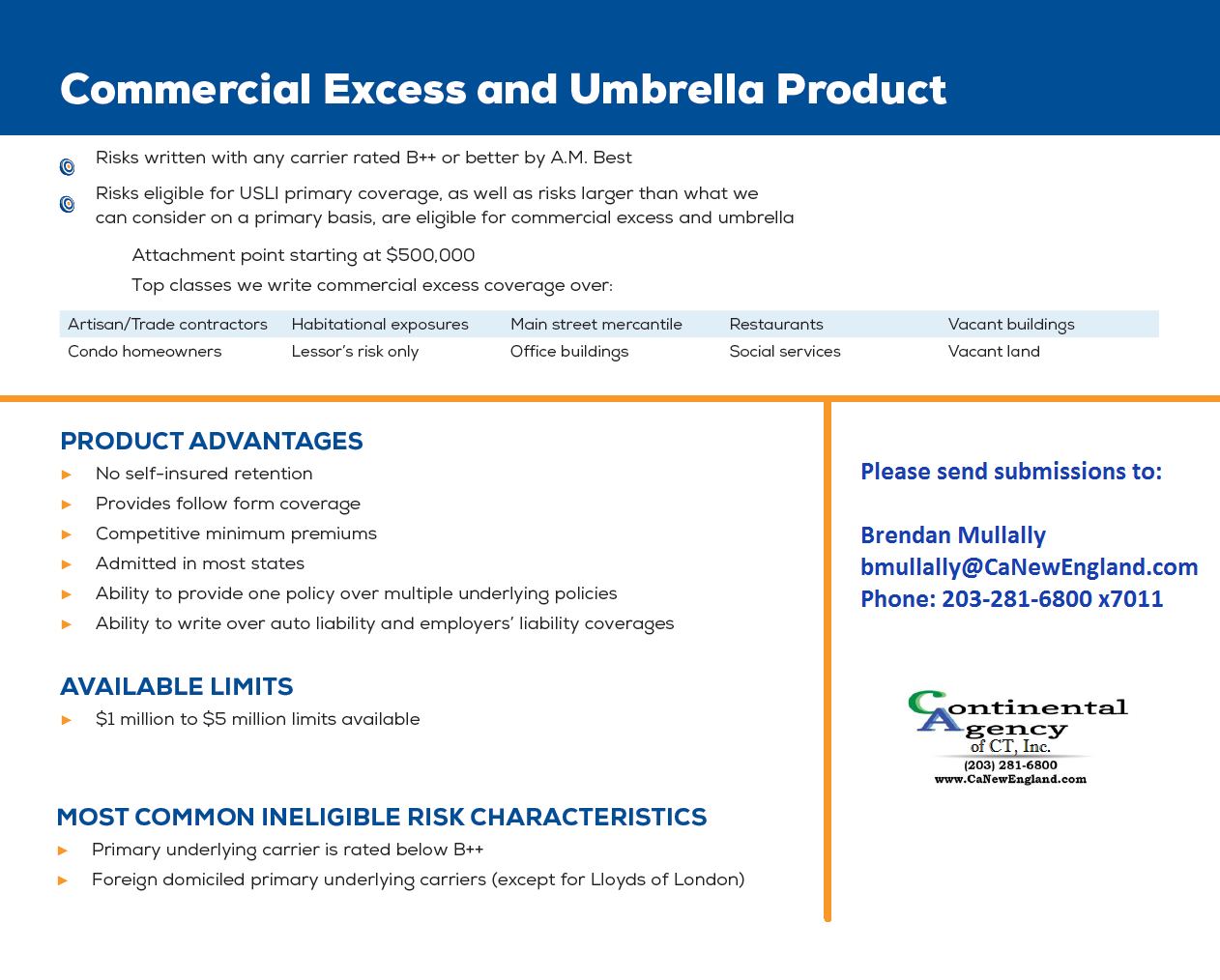 Commercial Umbrella & Excess Liability are handled by Brendan Mullally.